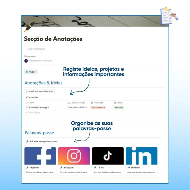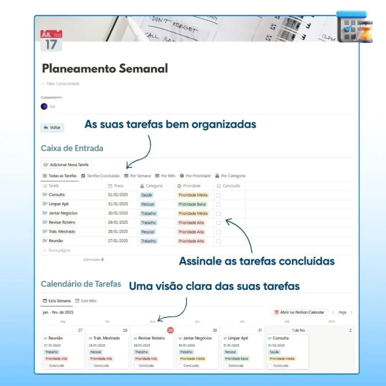 ✅ Acesso num clique: Recebe um link, clica e o seu Planner abre-se à sua frente. Simples assim.