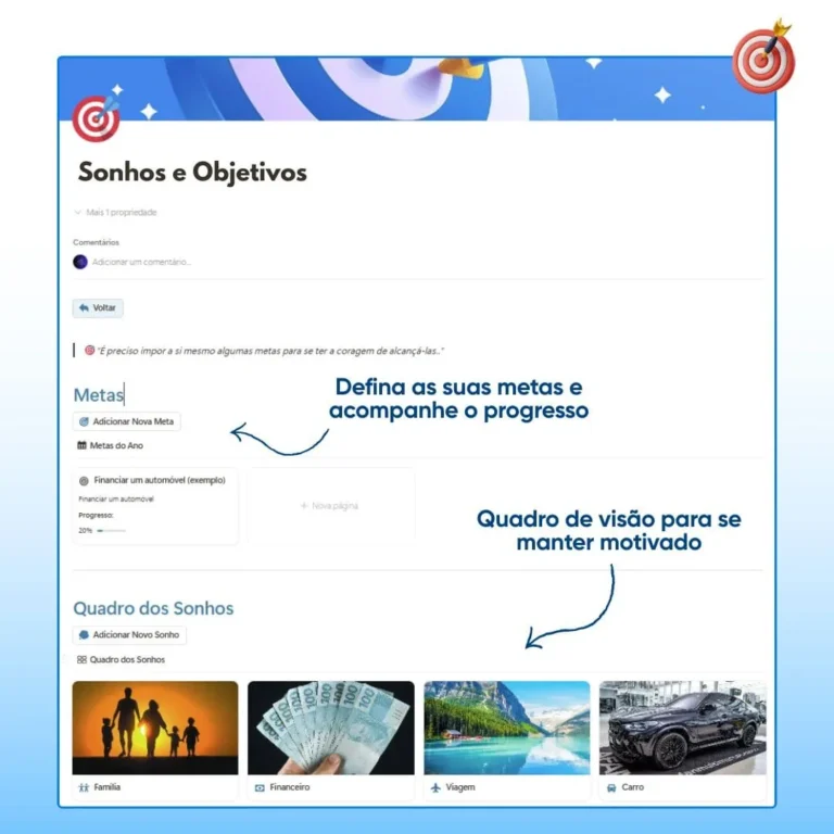Defina metas, acompanhe o seu progresso e mantenha o foco para alcançar os seus objetivos.