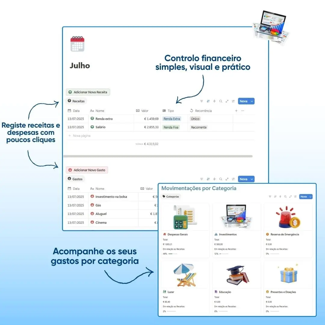 💰 Tenha controlo total das suas finanças mês a mês. Organize receitas e despesas de forma simples e eficiente.